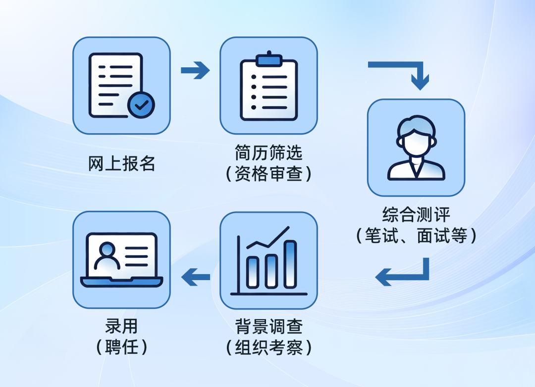 线上笔试、面试、背景调查(组织考察)、发放聘用信、体检等后续安排将以电话、短信、邮件等形式另行通知,通知发送至应聘者报名时提供的联系方式即视为有效送达,请及时关注。不具备资格的应聘者不再另行通知。
