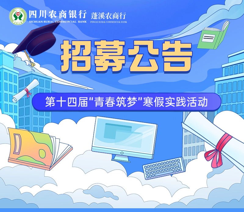 为了给广大在校大学生搭建就业创业的体验平台,蓬溪农商银行拟面向蓬溪县在校大学生开展2025年寒假社会实践活动。