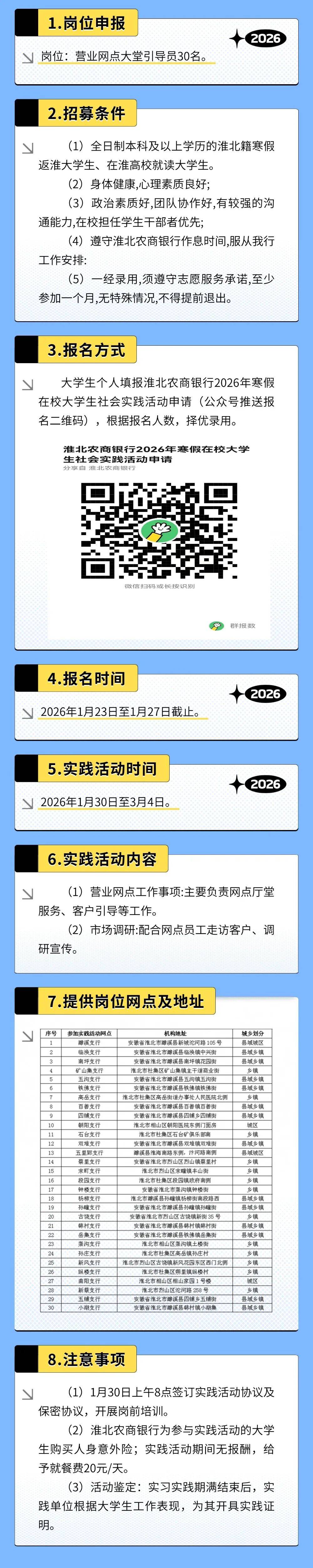 2026年淮北农商银行寒假在校大学生社会实践招聘公告