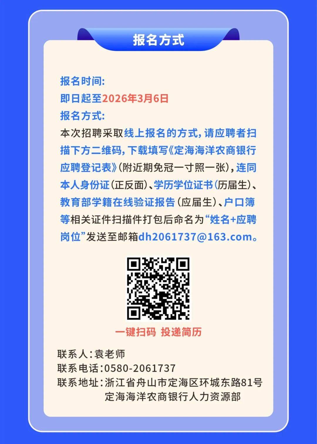 2026年定海海洋农商银行春季招聘公告