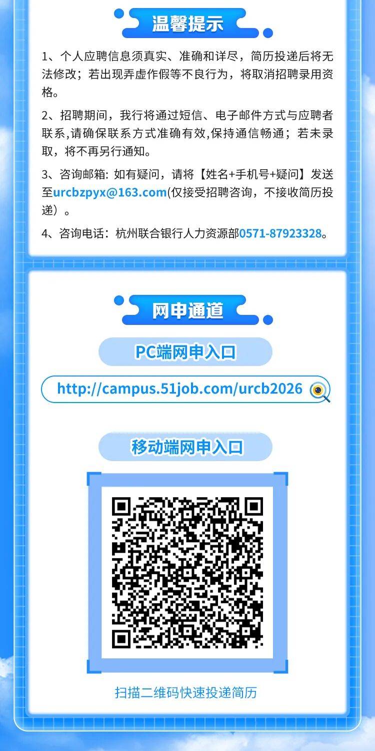2026年杭州联合银行春季校园招聘公告