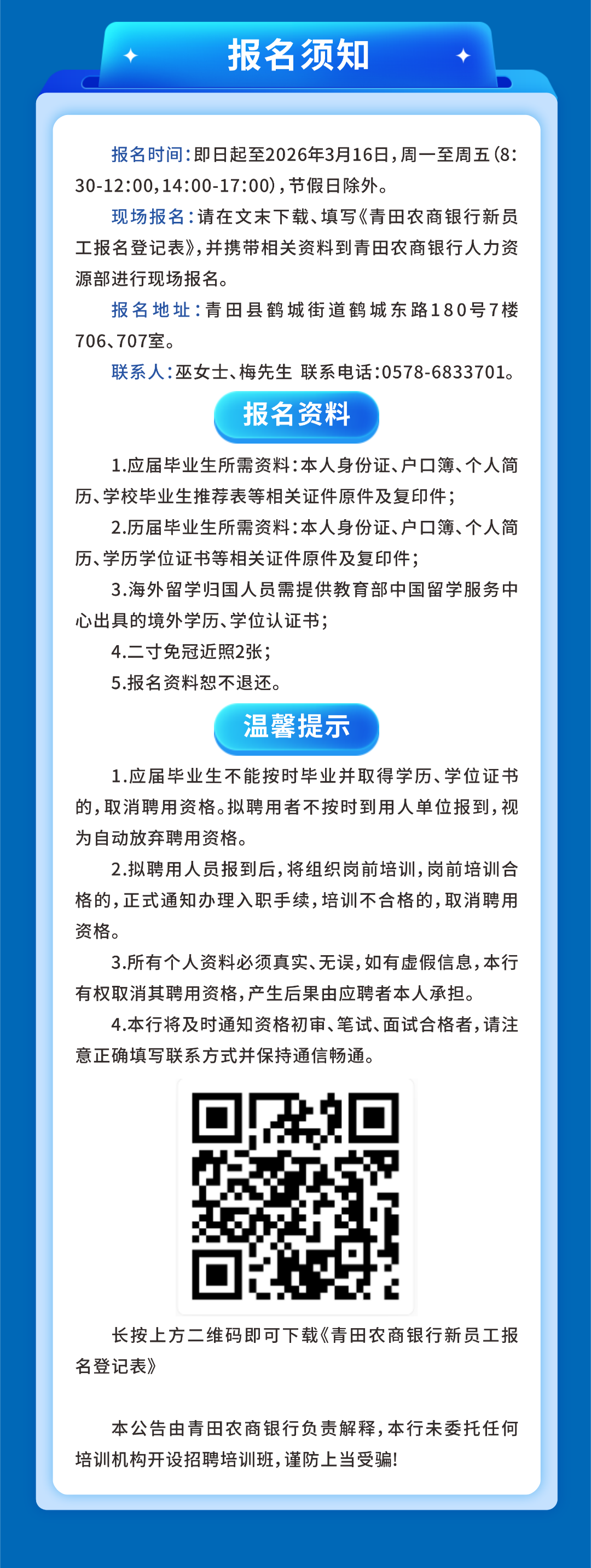 2026年青田农商银行新员工招聘公告