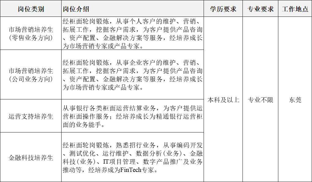 招商银行东莞分行期待你的加入!