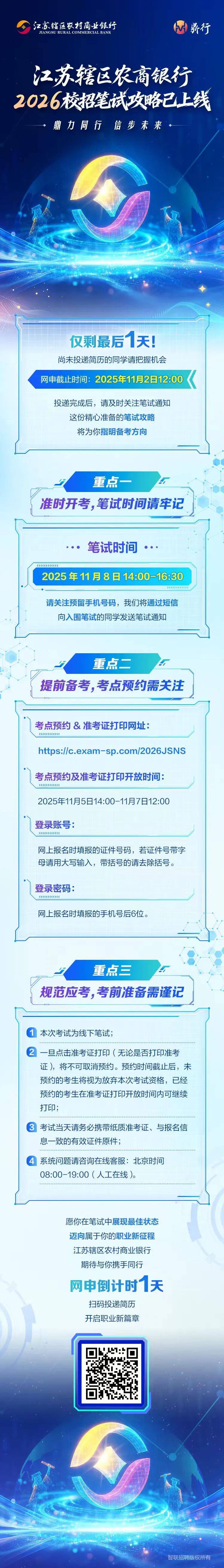 仅剩最后1天!尚未投递简历的同学请把握机会,网申截止时间:2025年11月2日12:00,投递完成后,请及时关注笔试通知,这份精心准备的笔试攻略将为你指明备考方向: