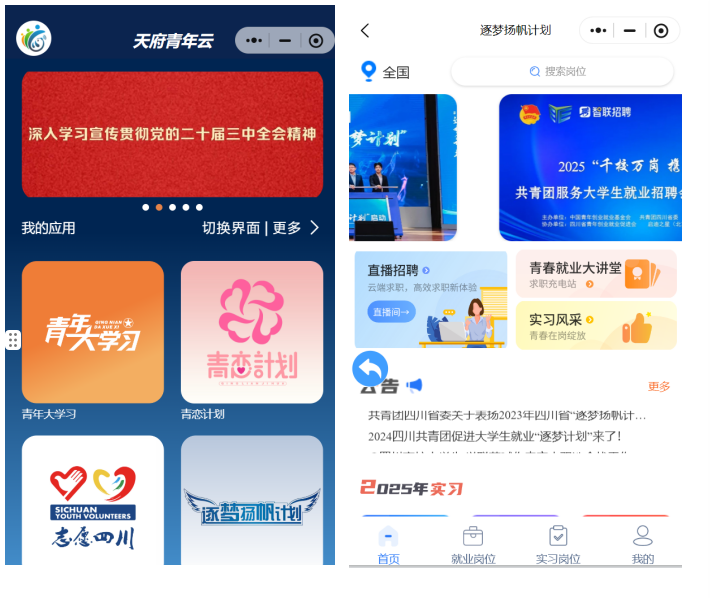 进入“天府青年云”小程序→逐梦扬帆计划板块→点击右下方“实习岗位”→页面上方“区域”选择四川-绵阳-江油搜索“江油农商银行”→找到对应岗位,点击投递简历→注册登录→按照提示步骤投递简历