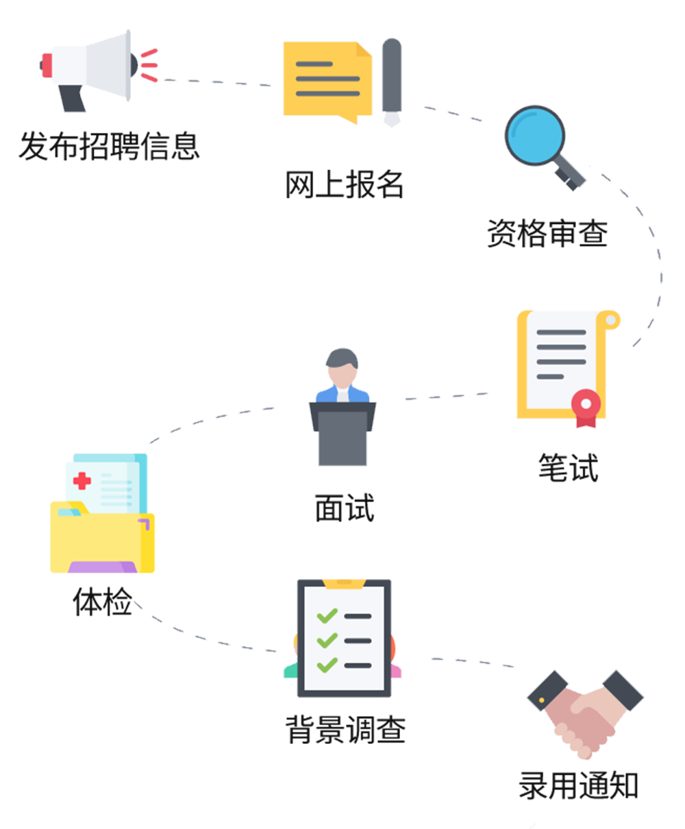 招聘采用笔试、面谈两个环节,分别按权重30%、70%计算综合成绩排名,结合职业行为风险测验作为参考(高风险人员不拟为录用对象),按综合成绩排名择优录用。