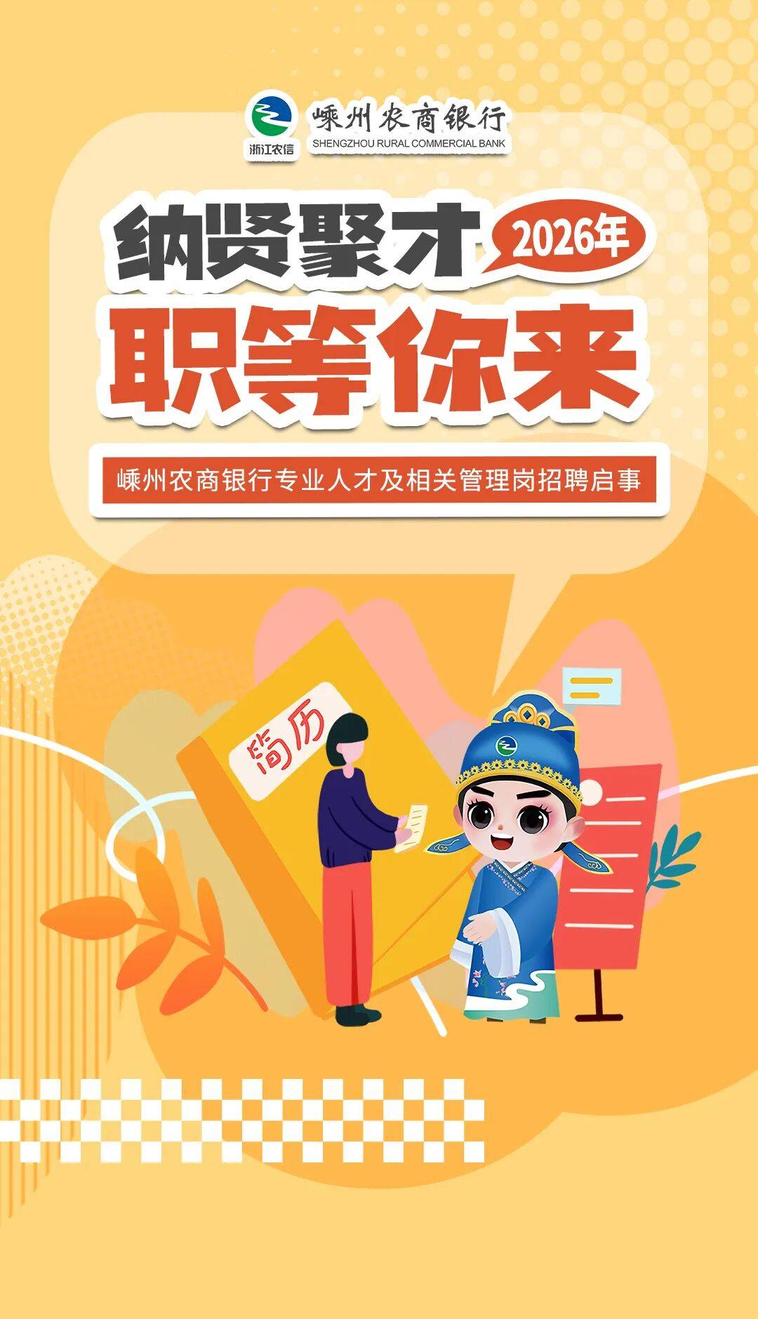 请扫描二维码填写相关信息,应聘期间保持手机畅通并关注本行微信公众号,后续招聘信息将通过公众号反馈。