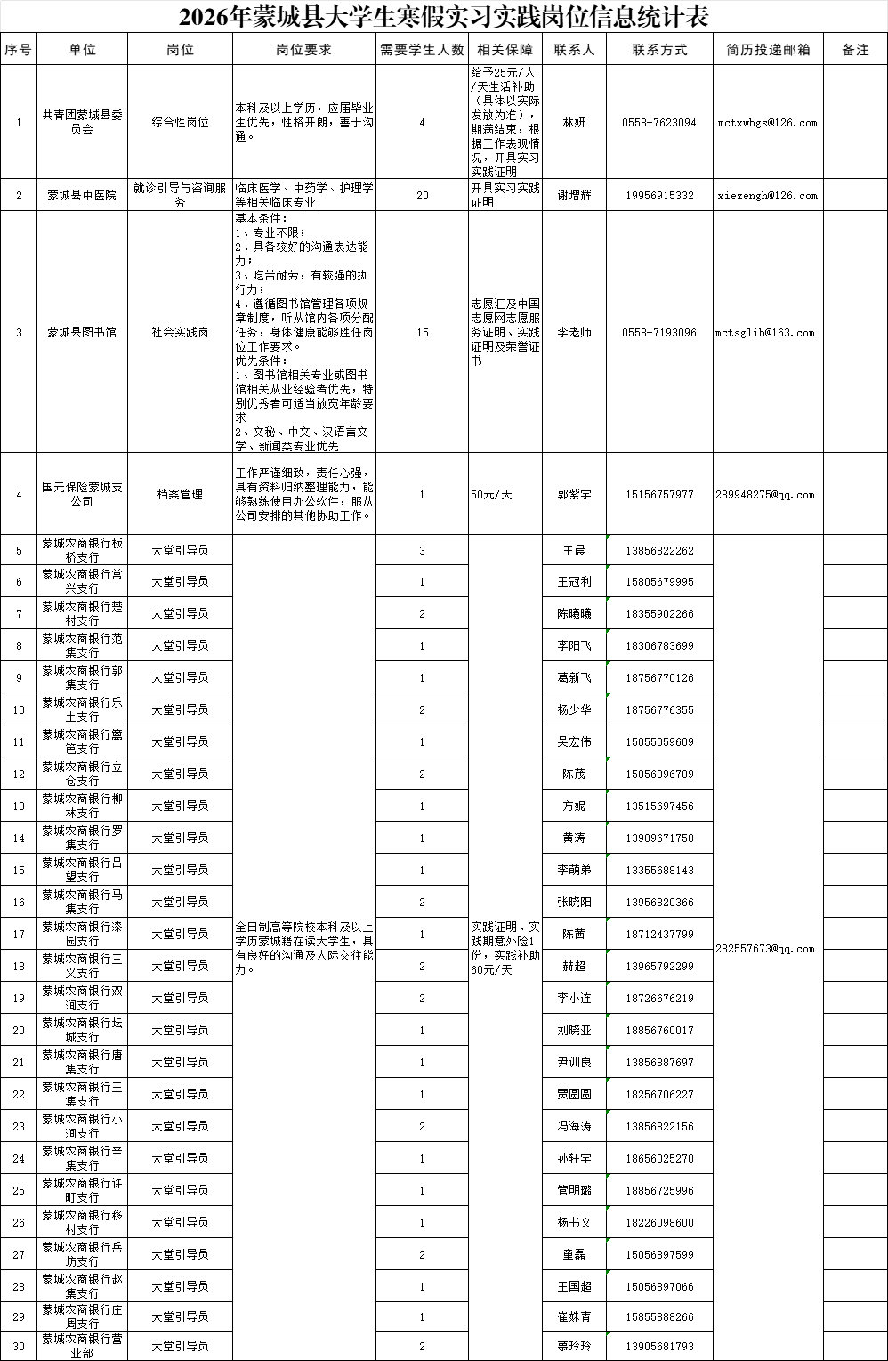 蒙城县2026年大学生寒假社会实习实践