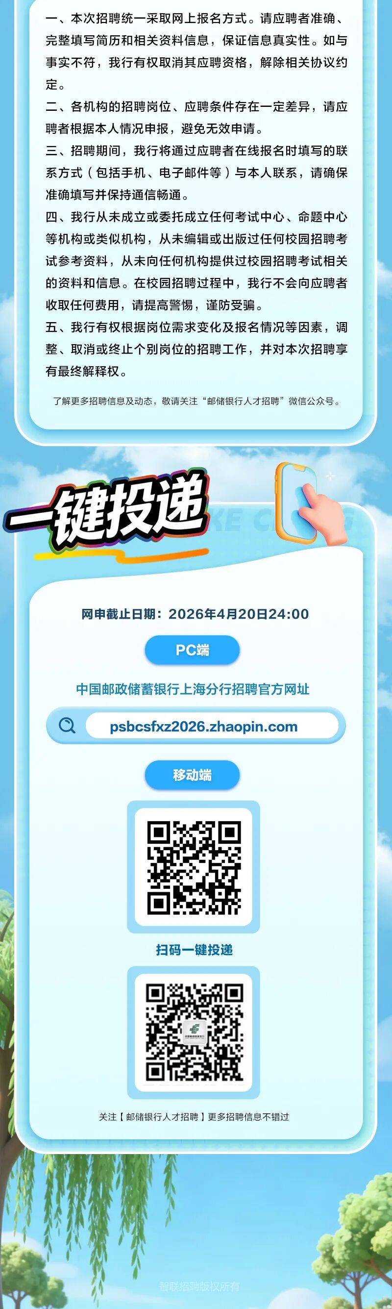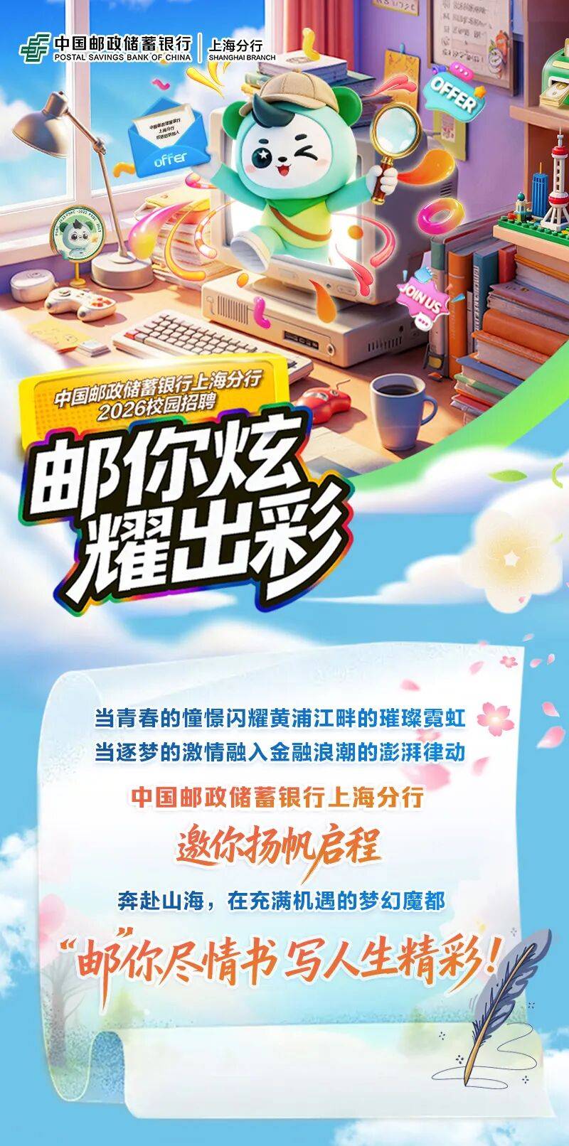 2026年中国邮政储蓄银行上海分行春季校园招聘公告